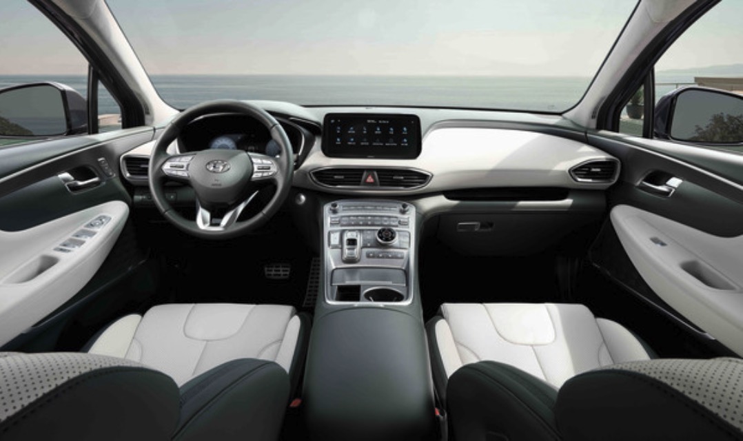 실내로 들어가보겠습니다. 실내는 12.3인치 풀 LCD 클러스터를 달아 최근 신차의 트랜드를 지켜가고 있습니다. 10.25인치 인포테인먼트 시스템을 달아 내비게이션 및 인포테인먼트에 쾌적함을 주고 있습니다. 기존 기어봉 타입에서 버튼식 변속타입으로 변경하여 차세대 자율주행 트랜드에 맞게 적용하였습니다. 또한 높아진 센터콘솔은 문에서 부터 크래시 패드까지 하나로 이어지며 운전자를 감싸는 형태로 디자인 되었습니다.