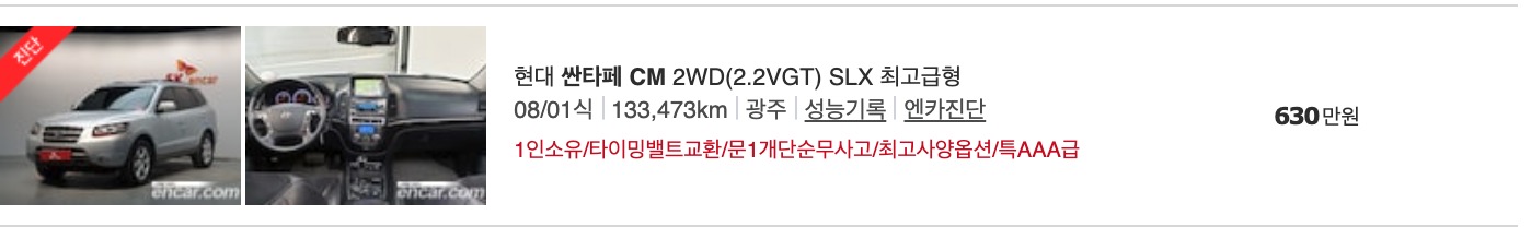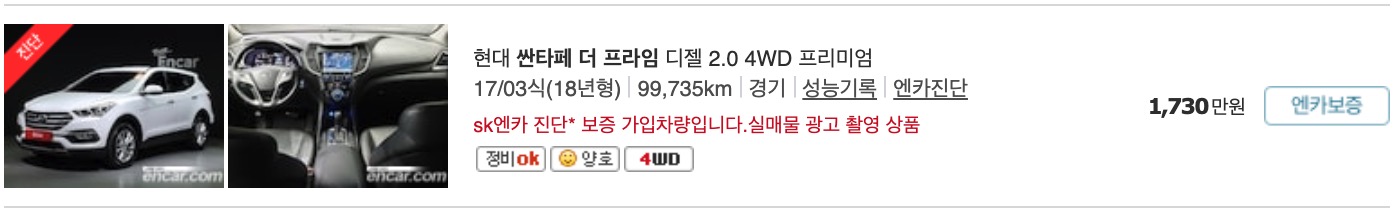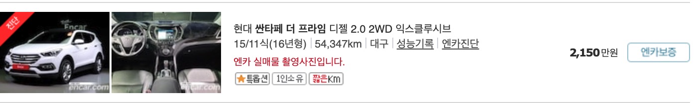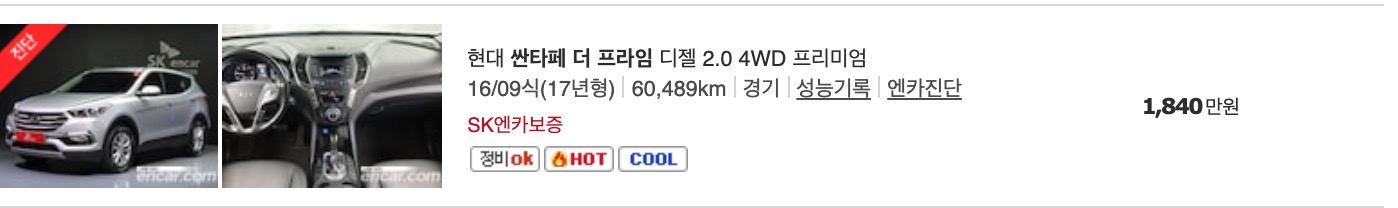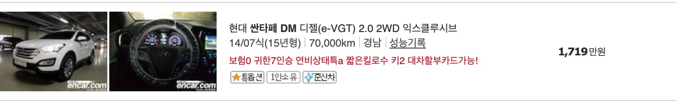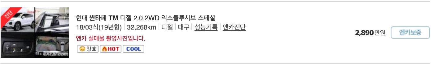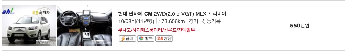 다만, 아래에 실제 매물을 보시면서 가격을 보실 수 있도록 아래에 실제 올라와 있는 물건들의 중고차 가격을 정리 했습니다.