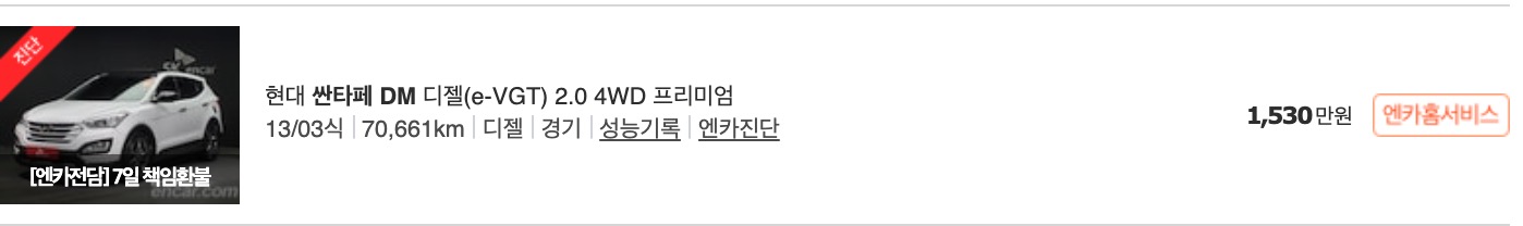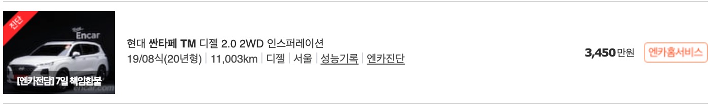 싼타페 중고차 가격 시세표