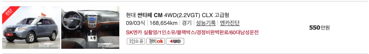 다만, 아래에 실제 매물을 보시면서 가격을 보실 수 있도록 아래에 실제 올라와 있는 물건들의 중고차 가격을 정리 했습니다.