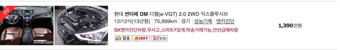 다만, 아래에 실제 매물을 보시면서 가격을 보실 수 있도록 아래에 실제 올라와 있는 물건들의 중고차 가격을 정리 했습니다.